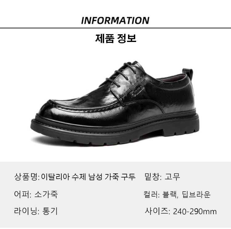 ● 영국 스타일의 세련된 디자인으로 어떤 코디에도 멋스럽게 어울리는 남성용 캐주얼 가죽 신발입니다. ● 고품질 가죽 소재를 사용하여 내구성이 뛰어나고, 장시간 착용해도 편안한 착화감을 제공합니다. ● 트렌디한 신상 디자인과 정교한 마감 처리로 일상은 물론 특별한 자리에서도 돋보이는 스타일을 완성할 수 있습니다. ● 미끄럼 방지 아웃솔로 안전하고 안정된 보행을 도와주며, 사계절 내내 활용 가능한 실용적인 아이템입니다. ● 다양한 캐주얼룩과 포멀룩에 자연스럽게 매치되어, 데일리 슈즈로 손색없는 남성 신발입니다.
